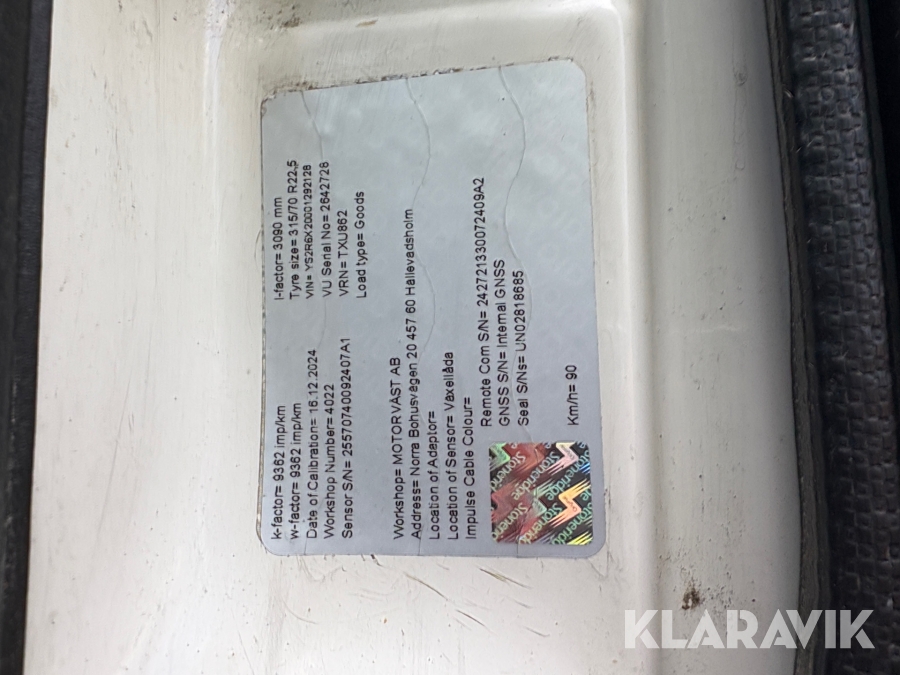 • Serie/chassinummer framgår