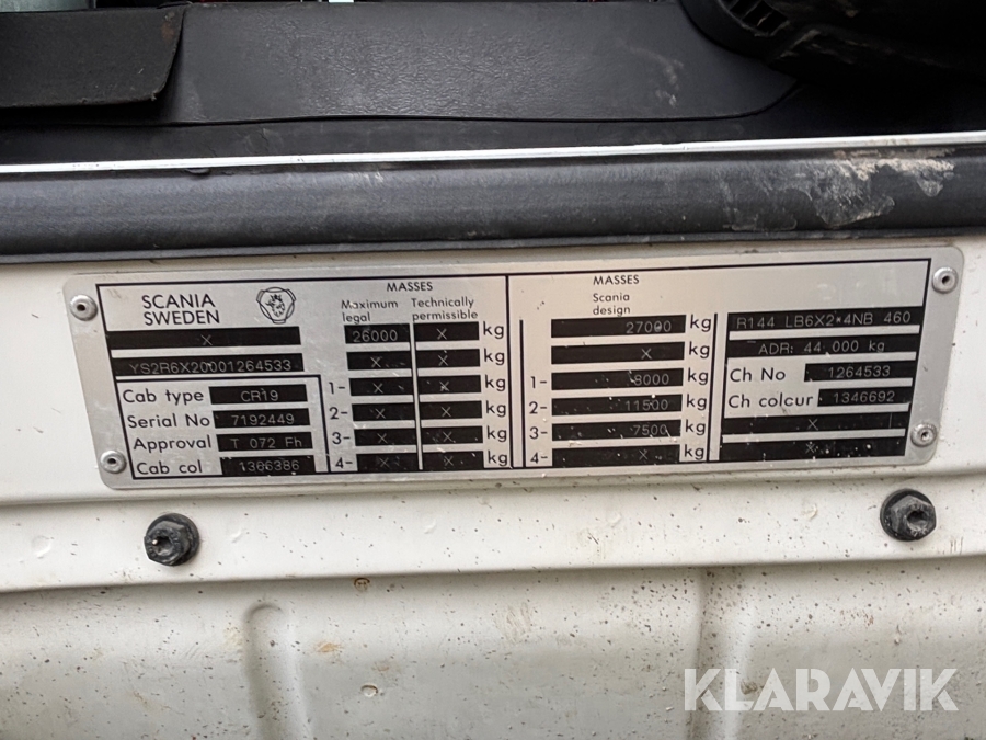 • Serie/chassinummer framgår