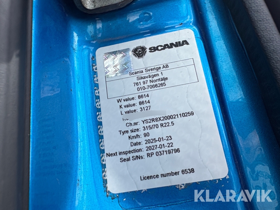 • Serie/chassinummer framgår