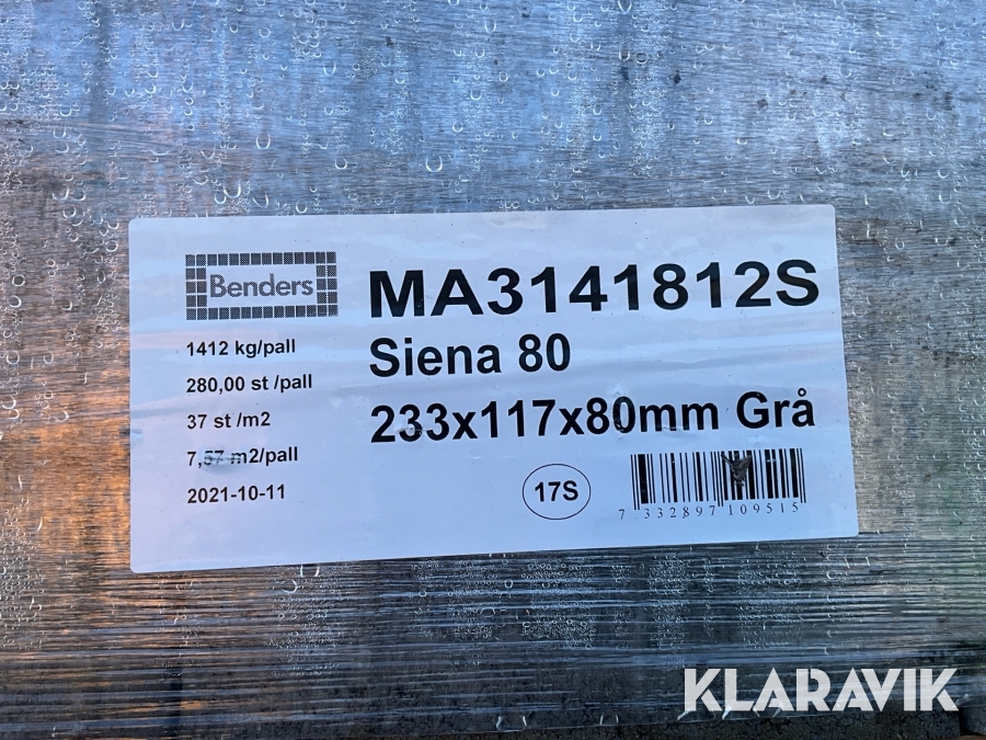 Betongmarkplatta 20st pallar Benders Siena 80 Grå 233x117x80mm