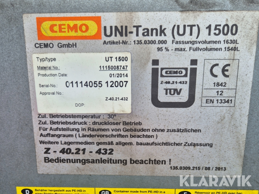 Oljetank Cemo Uni-tank ut 1500