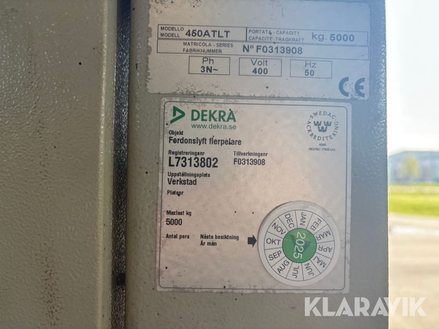 Fyrpelarlyft Automec 450ATLT med integrerad saxlyft, 5000 kg