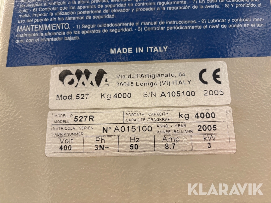 Fyrpelarlyft OMA 527R 4000kg