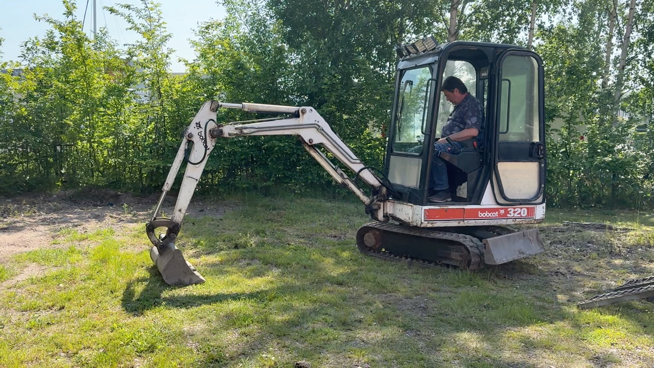 Grävmaskin Bobcat 320 med släp och skopa