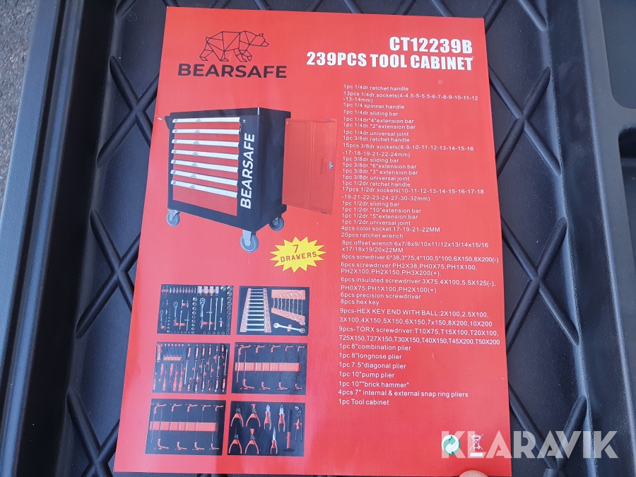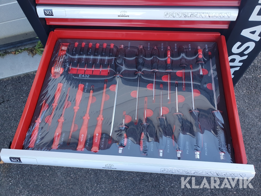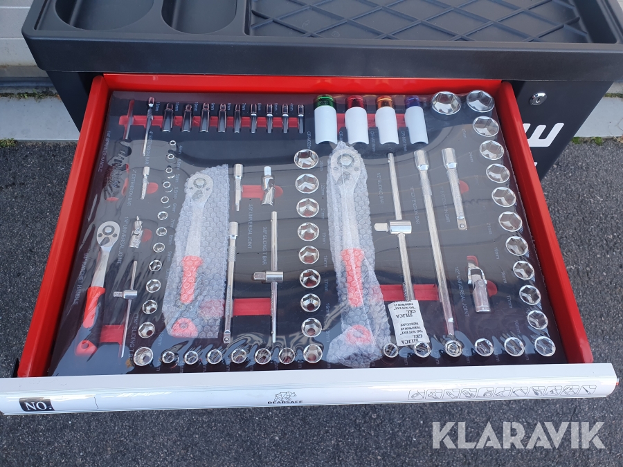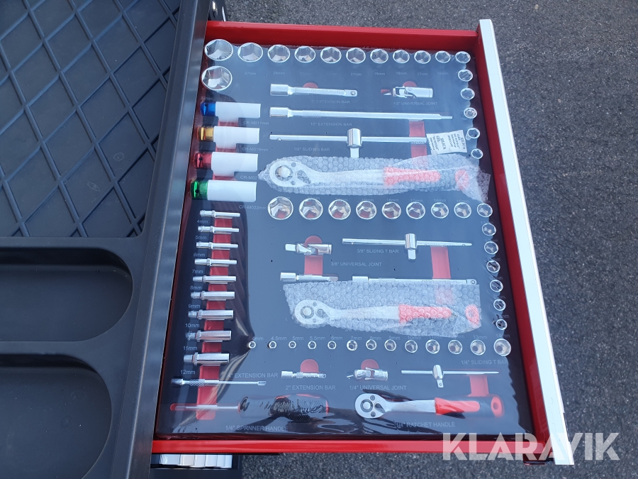 Verktygsvagn med mängder av verktyg, aldrig använd.