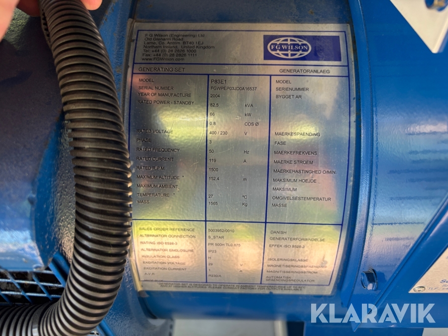 Generator/Elverk FG Wilson P83E1 82,5 kVA