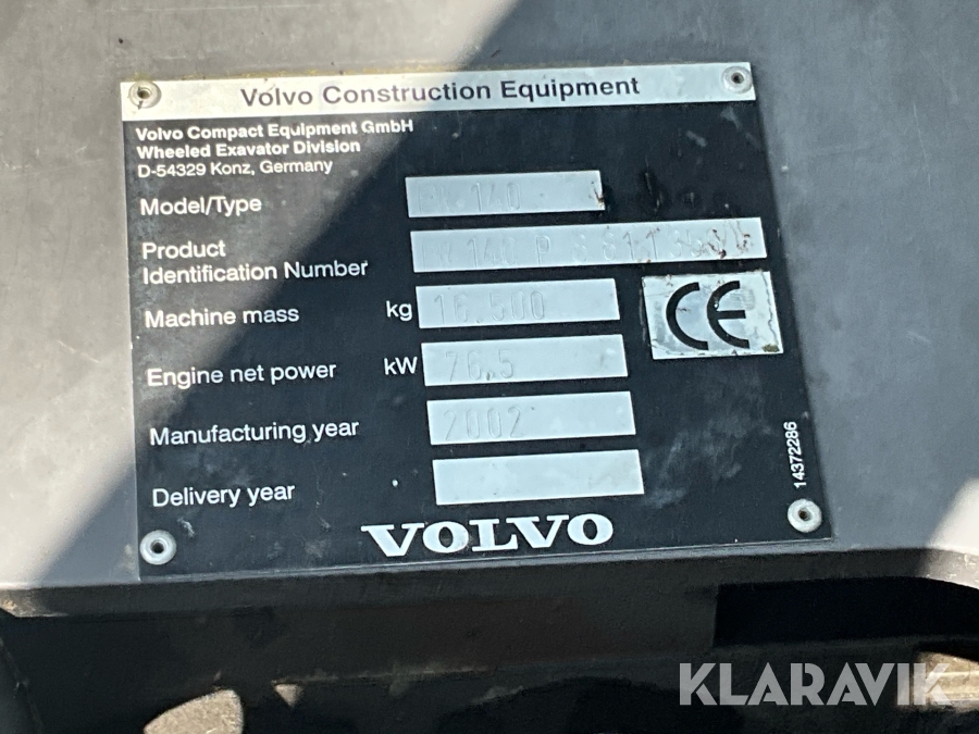 Grävmaskin Volvo EW140 med tiltrotator