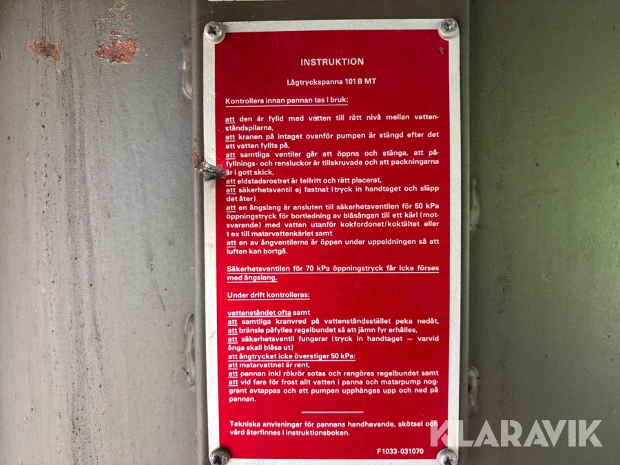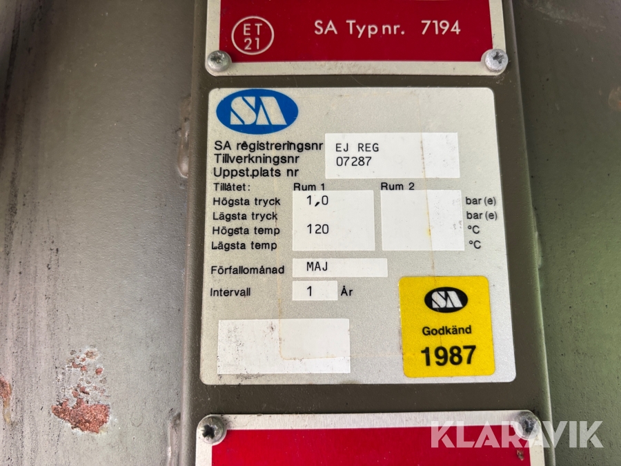 Boka frakt? Det finns ingen specifik information om frakt för just det här objektet, men om du skickar oss en förfrågan via vårt fraktformulär, så undersöker vi möjligheten. Paket, EU-pall eller större maskin? Klaravik har fraktavtal med Schenker och i de fall vi kan hjälpa till med frakt gäller det objekt som ryms i paket eller inom en EU-pall (upp till 120*80 cm och 990 kg). Det går att beställa frakt inom Sverige, dock inte till utlandet. Vid frakt på större maskiner rekommenderar vi gärna transportföretag som du kan kontakta.