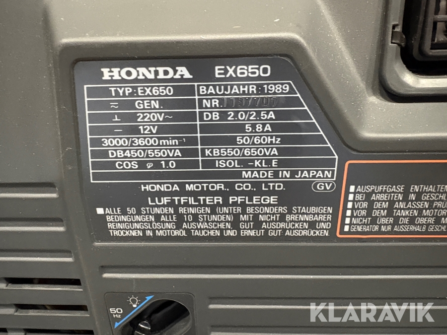 Elverk Generator Honda EX 650