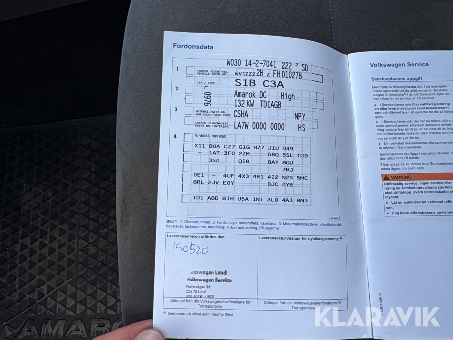 • Serie/chassinummer framgår
