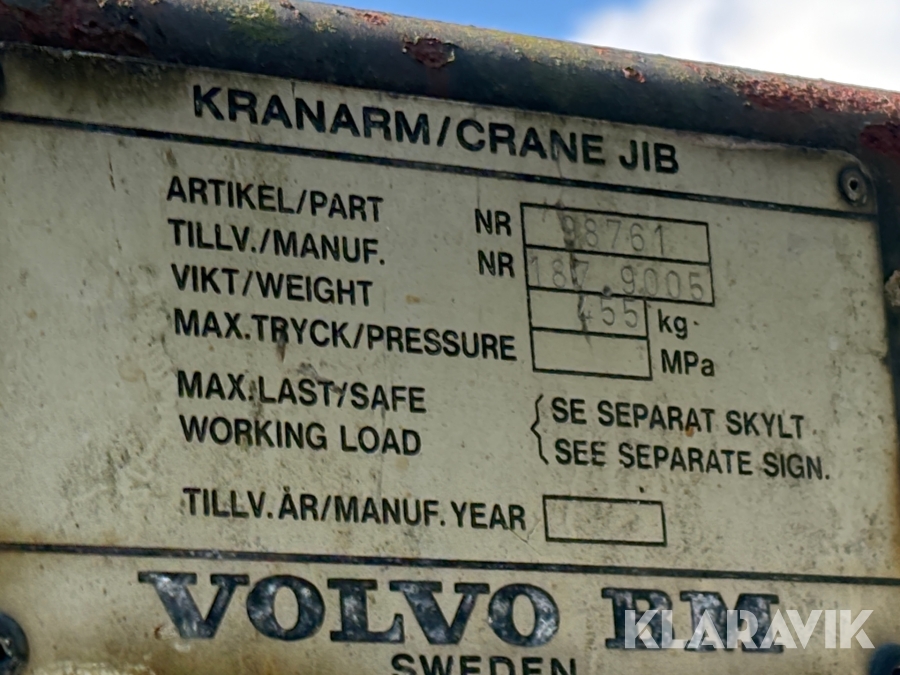 Boka frakt? Det finns ingen specifik information om frakt för just det här objektet, men om du skickar oss en förfrågan via vårt fraktformulär, så undersöker vi möjligheten. Paket, EU-pall eller större maskin? Klaravik har fraktavtal med Schenker och i de fall vi kan hjälpa till med frakt gäller det objekt som ryms i paket eller inom en EU-pall (upp till 120*80 cm och 990 kg). Det går att beställa frakt inom Sverige, dock inte till utlandet. Vid frakt på större maskiner rekommenderar vi gärna transportföretag som du kan kontakta.