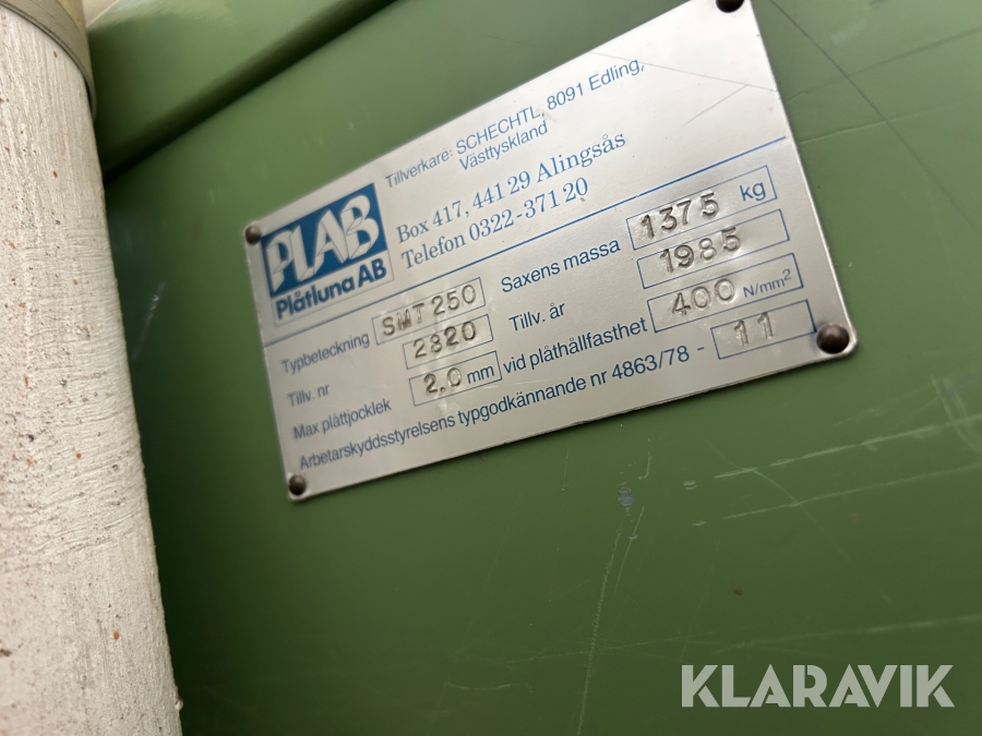Boka frakt? Det finns ingen specifik information om frakt för just det här objektet, men om du skickar oss en förfrågan via vårt fraktformulär, så undersöker vi möjligheten. Paket, EU-pall eller större maskin? Klaravik har fraktavtal med Schenker och i de fall vi kan hjälpa till med frakt gäller det objekt som ryms i paket eller inom en EU-pall (upp till 120*80 cm och 990 kg). Det går att beställa frakt inom Sverige, dock inte till utlandet. Vid frakt på större maskiner rekommenderar vi gärna transportföretag som du kan kontakta.