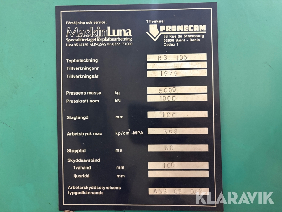 Boka frakt? Det finns ingen specifik information om frakt för just det här objektet, men om du skickar oss en förfrågan via vårt fraktformulär, så undersöker vi möjligheten. Paket, EU-pall eller större maskin? Klaravik har fraktavtal med Schenker och i de fall vi kan hjälpa till med frakt gäller det objekt som ryms i paket eller inom en EU-pall (upp till 120*80 cm och 990 kg). Det går att beställa frakt inom Sverige, dock inte till utlandet. Vid frakt på större maskiner rekommenderar vi gärna transportföretag som du kan kontakta.