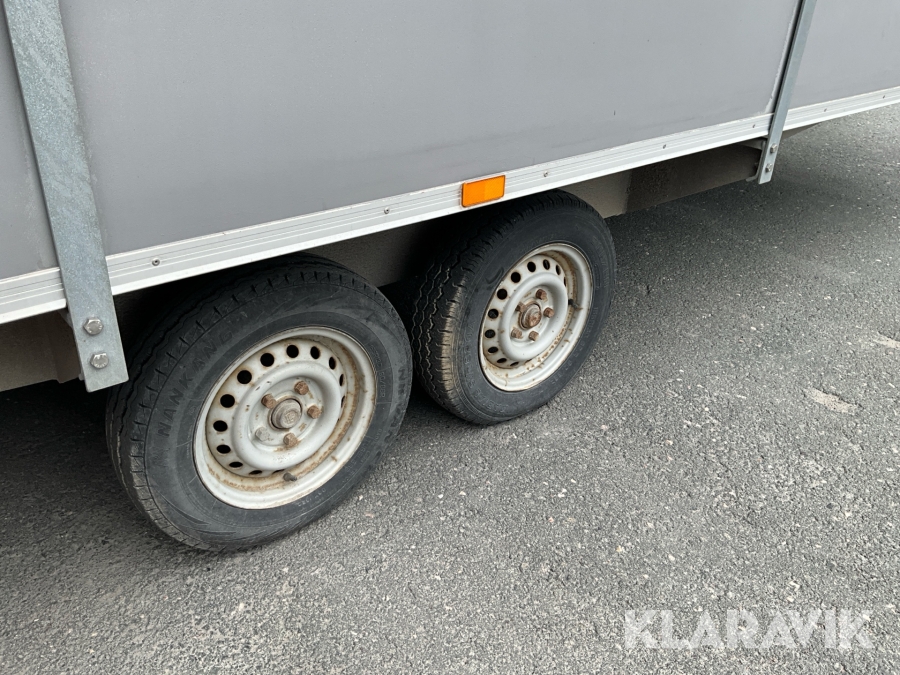 For sheds and containers (10 feet and larger), loading assistance can be purchased. Payment is made either by invoice or by card at the seller's location. The cost per lift is SEK 500 + VAT.