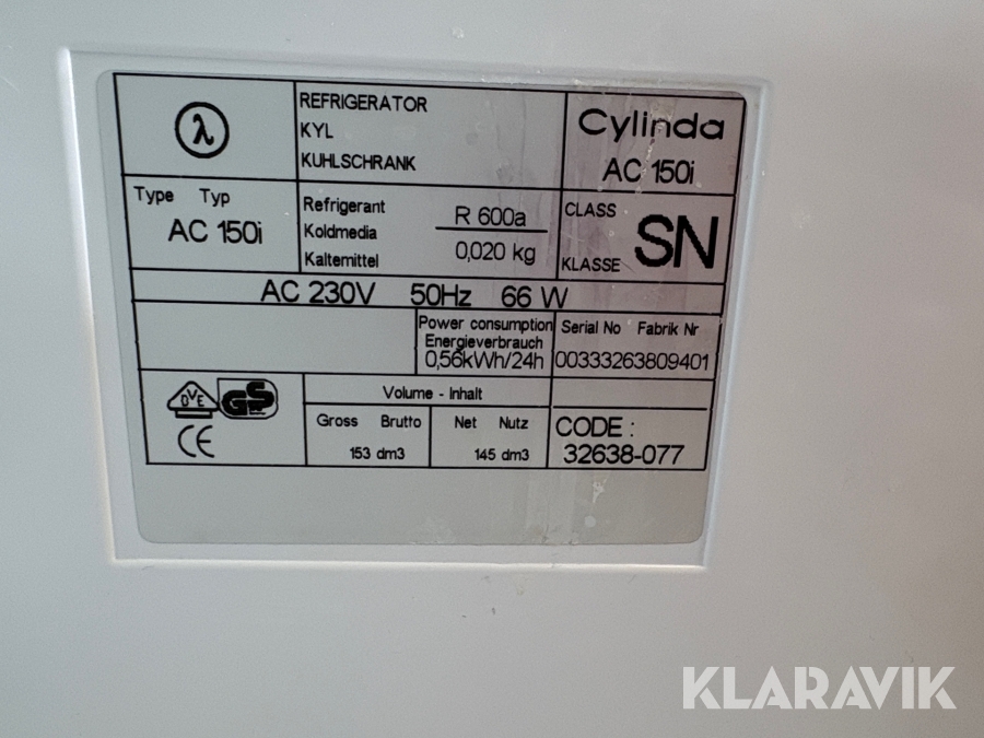 Kylskåp Cylinda AC 150i