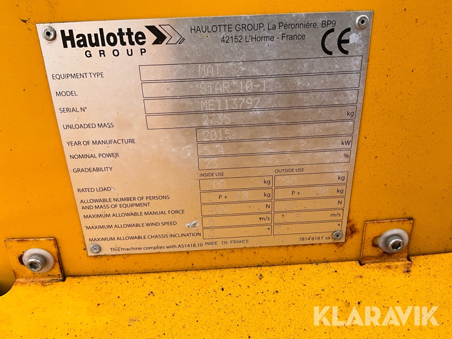 Pelarlift Haulotte Star10