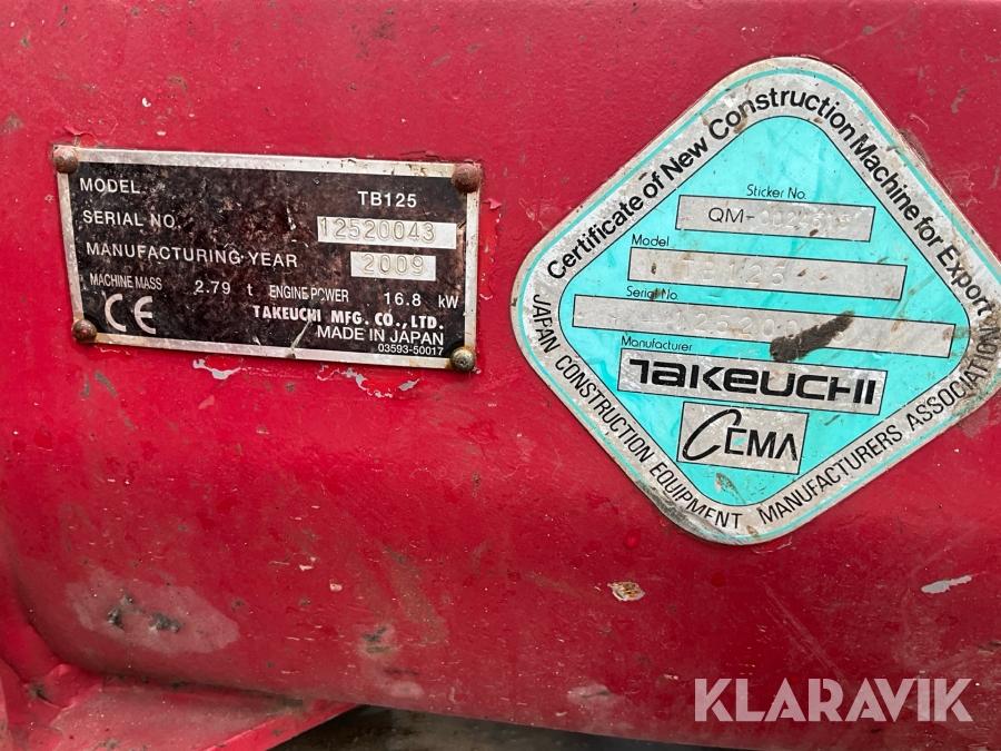 Grävmaskin Takeuchi TB125 med redskap
