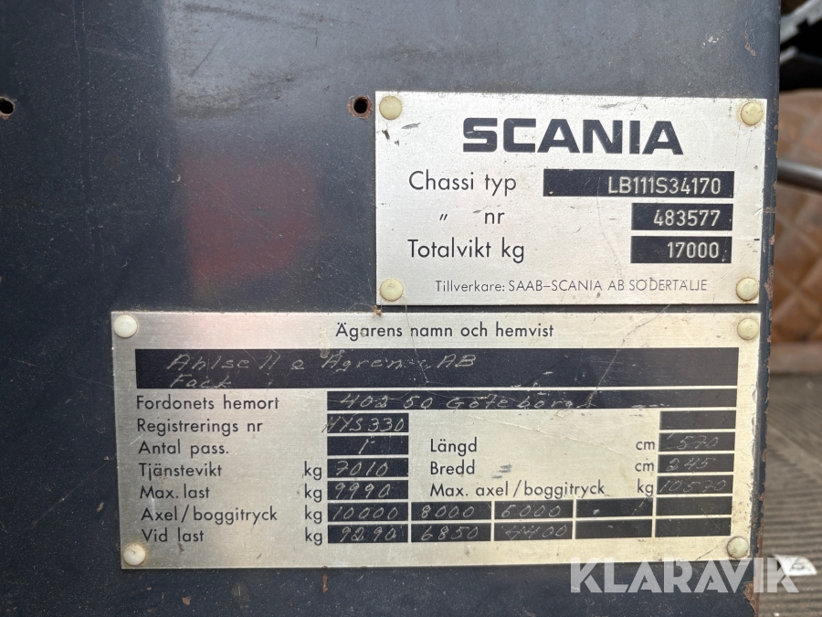 Dragbil Scania LB 111 S34 170 med kran