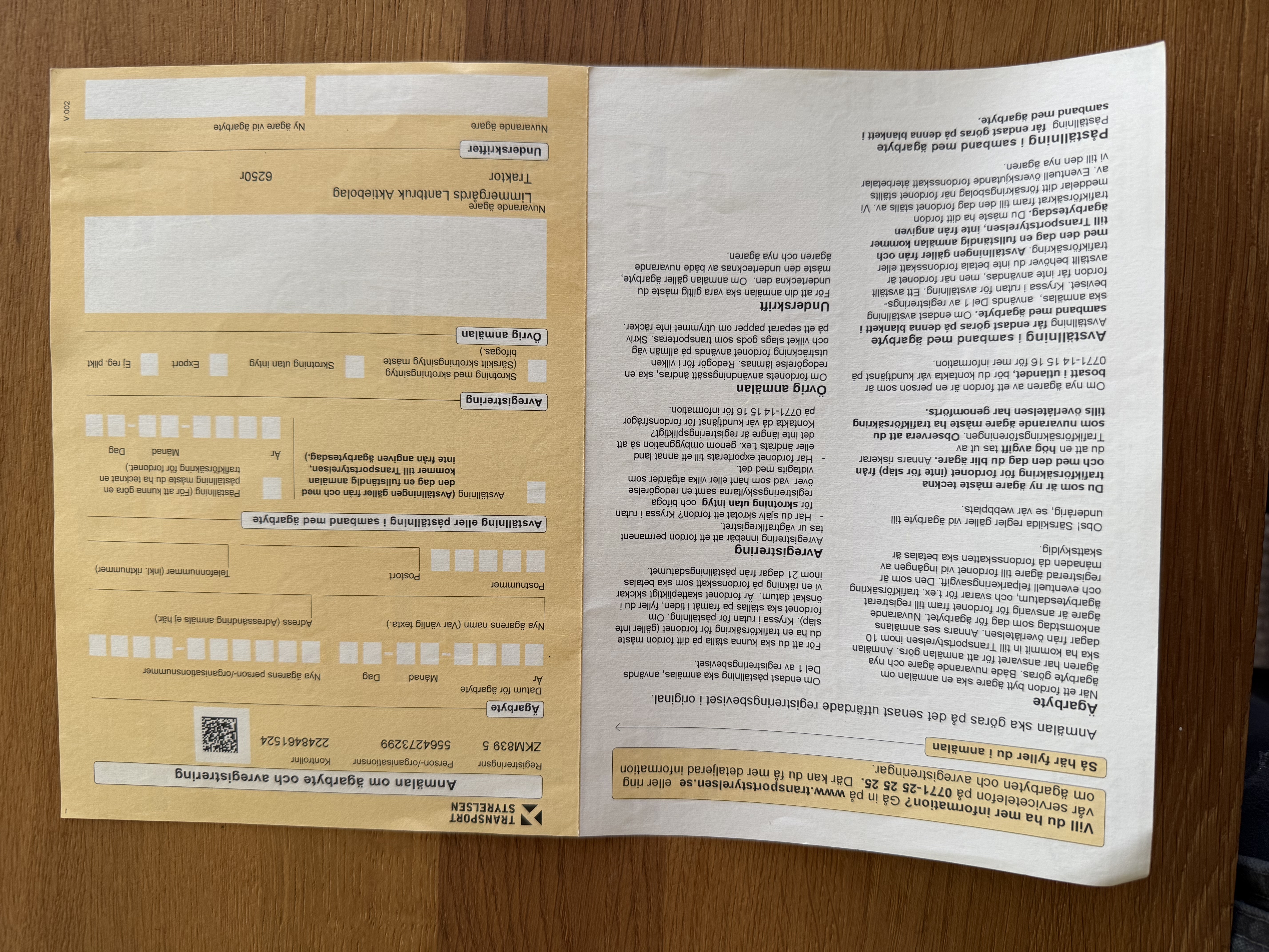 • Serie/chassinummer framgår