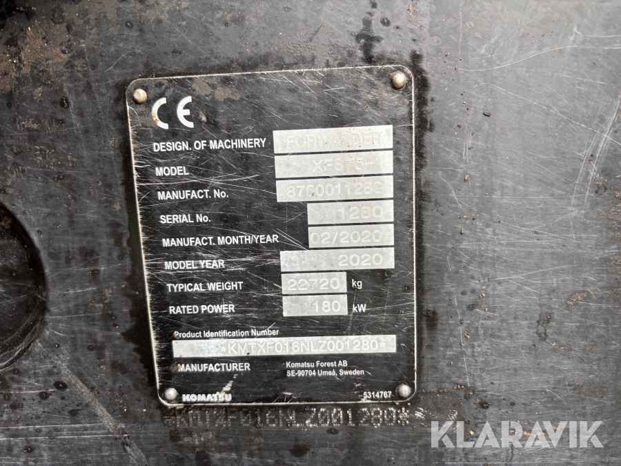 • Serie/chassinummer framgår