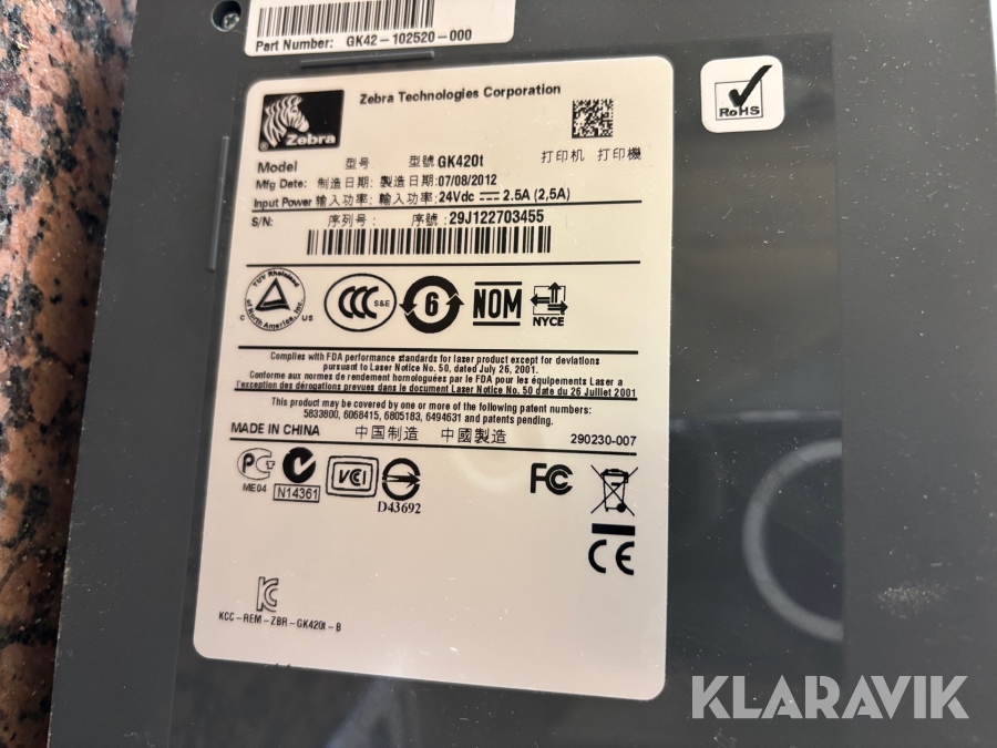 Etikettskrivare Zebra GK420T