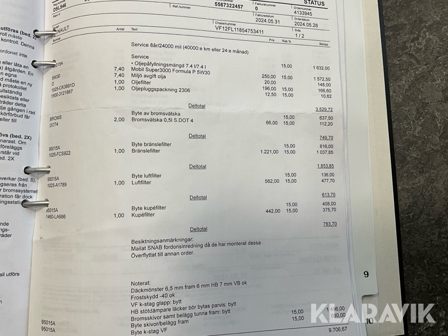 • Serie/chassinummer framgår