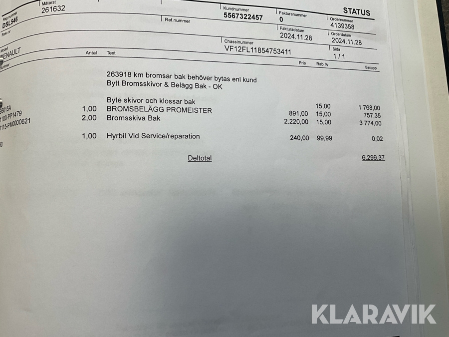 Du som köpare är skyldig att kontrollera objektet vid hämtning. Skiljer sig något avsevärt jämfört med informationen på klaravik.se? Kontakta då Klaravik innan du tar objektet från platsen. Läs fullständiga köpvillkor.