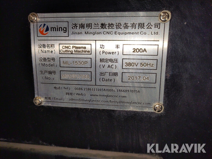 Plasma CNC skärbord Ming ML-1530P 3000x1500