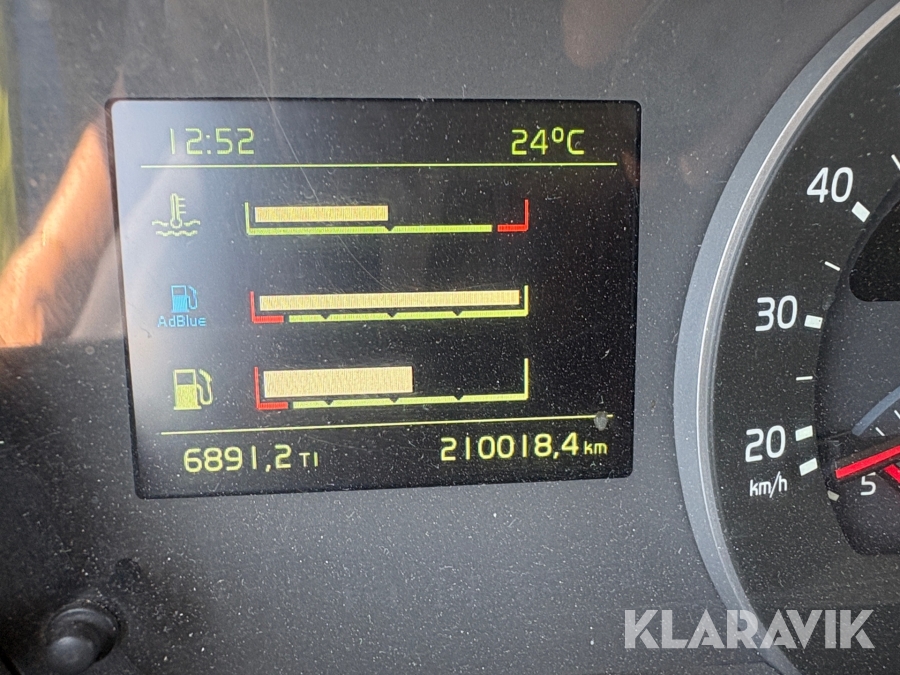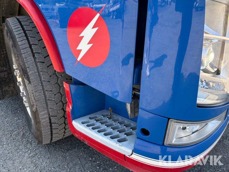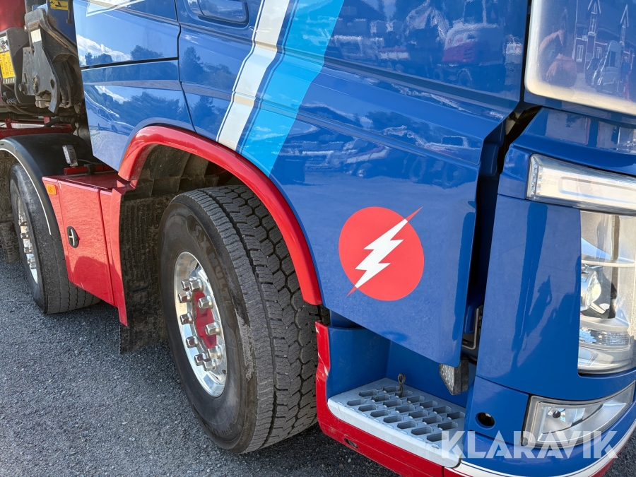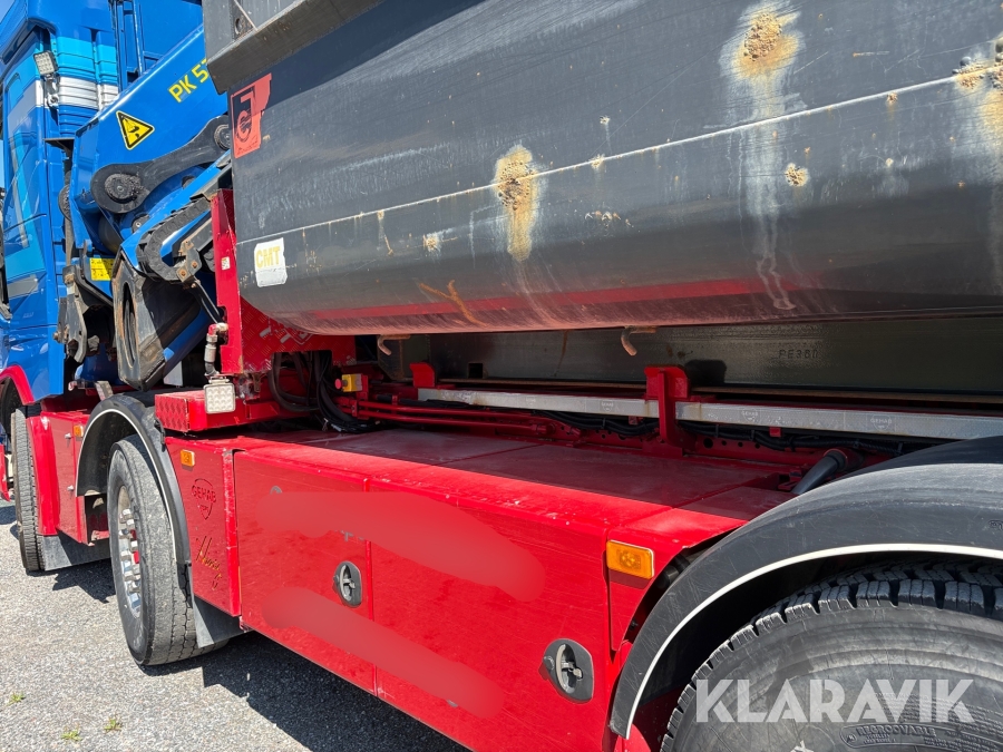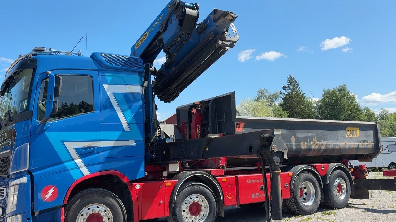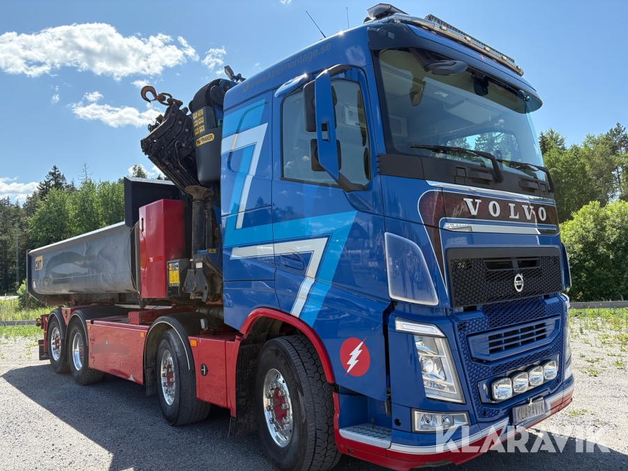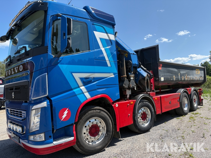 Kranväxlare Volvo FH med grusflak, maskinflak samt jibb