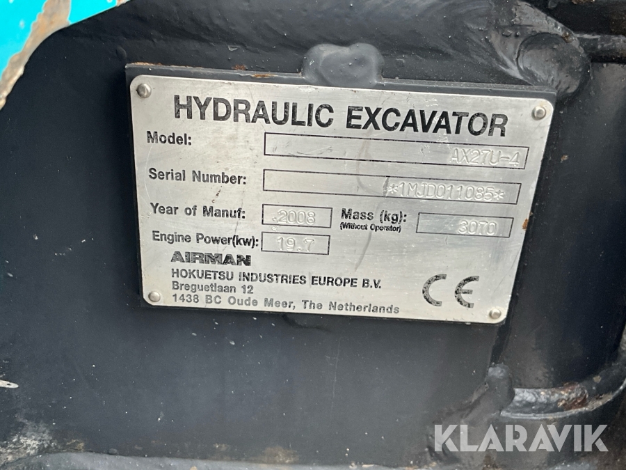 Grävmaskin Airman AX27U-4