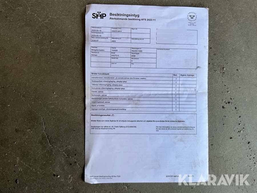 Du som köpare är skyldig att kontrollera objektet vid hämtning. Skiljer sig något avsevärt jämfört med informationen på klaravik.se? Kontakta då Klaravik innan du tar objektet från platsen. Läs fullständiga köpvillkor.