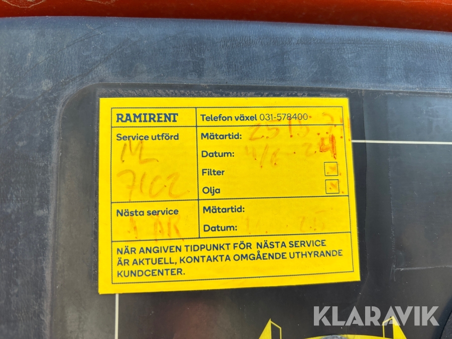 Läs om metodikenPga platsbrist är det viktigt att du som köpare hämtar inom 12 dagar från auktionsavslut. Vid frågor om frakt kontakta trade@ramirent.se.