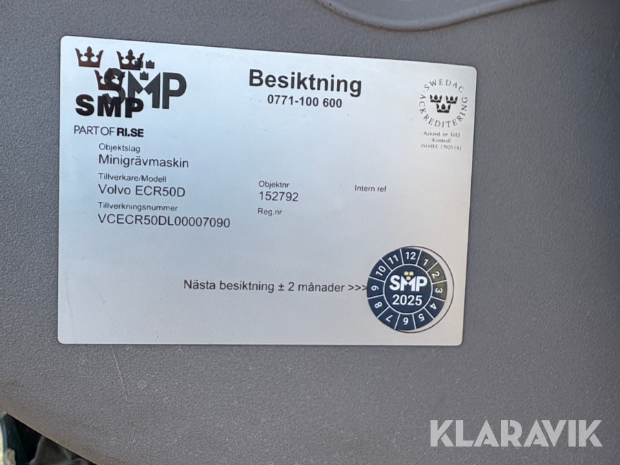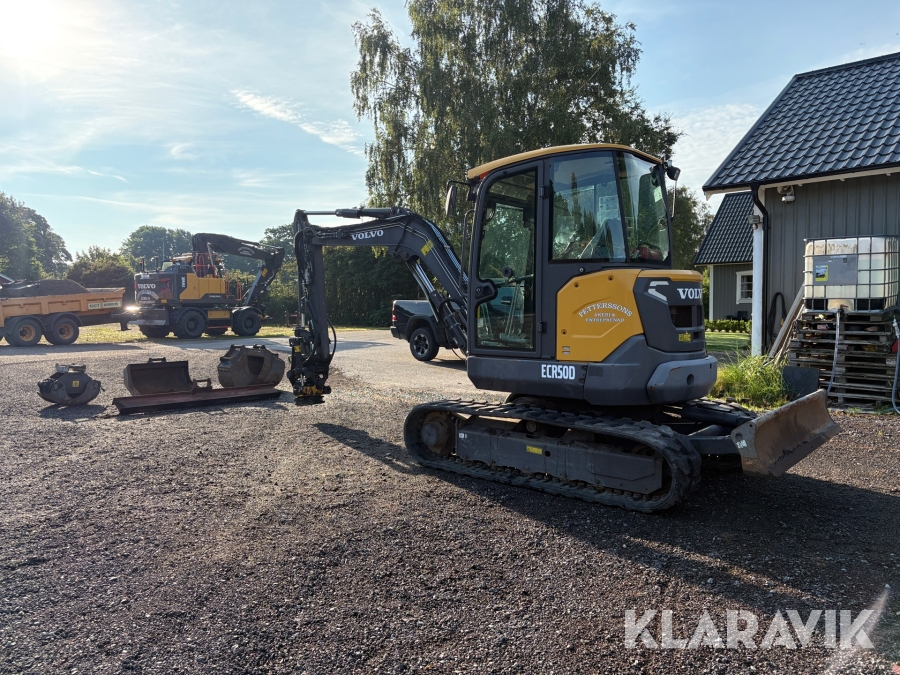 Grävmaskin Volvo ECR50D med tiltrotator och 5 st redskap