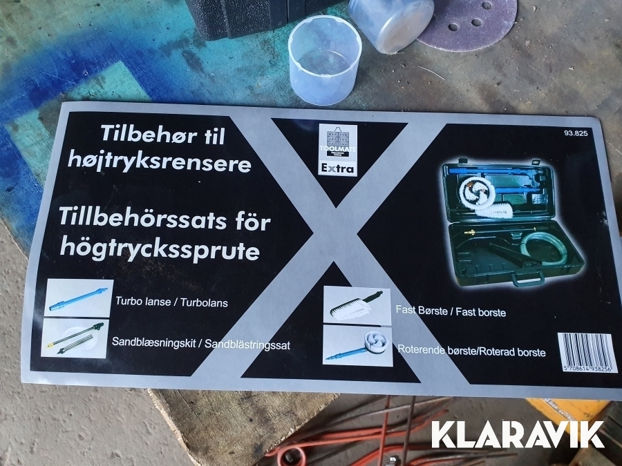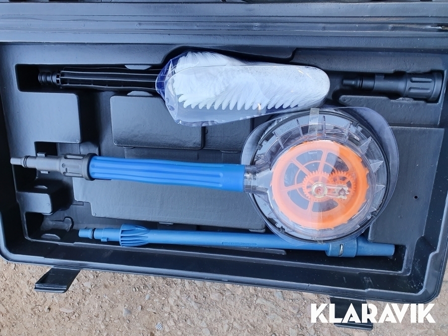 Låda med diverse tillbehör för högtryckstvätt.