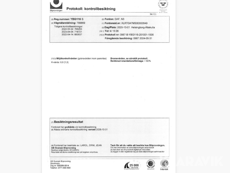 • Serie/chassinummer framgår