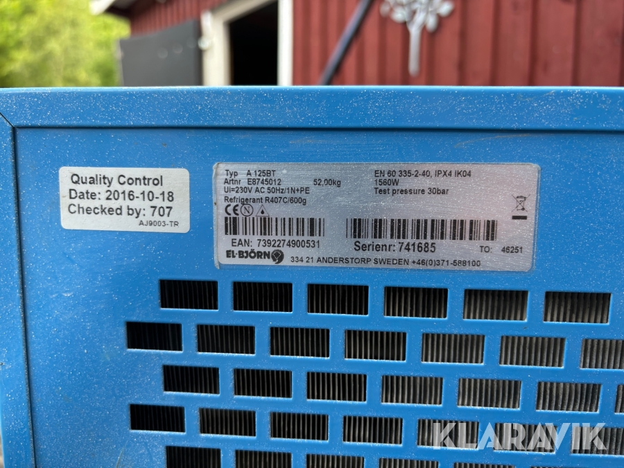 Boka frakt? Det finns ingen specifik information om frakt för just det här objektet, men om du skickar oss en förfrågan via vårt fraktformulär, så undersöker vi möjligheten. Paket, EU-pall eller större maskin? Klaravik har fraktavtal med Schenker och i de fall vi kan hjälpa till med frakt gäller det objekt som ryms i paket eller inom en EU-pall (upp till 120*80 cm och 990 kg). Det går att beställa frakt inom Sverige, dock inte till utlandet. Vid frakt på större maskiner rekommenderar vi gärna transportföretag som du kan kontakta.