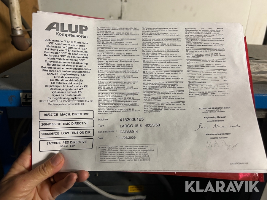 Skruvkompressor Alup Largo 15 med tank och kyltork