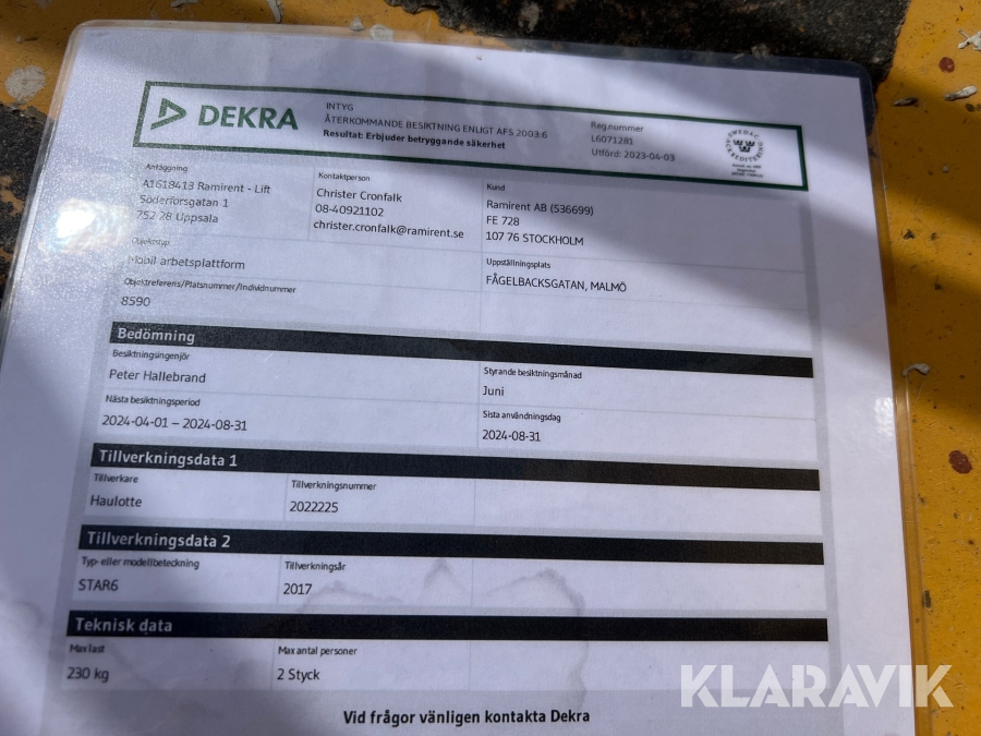 Du som köpare är skyldig att kontrollera objektet vid hämtning. Skiljer sig något avsevärt jämfört med informationen på klaravik.se? Kontakta då Klaravik innan du tar objektet från platsen. Läs fullständiga köpvillkor.