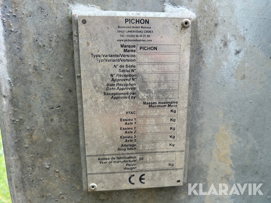 Fastgödselspridare Pichon M1450 14,5 kubik