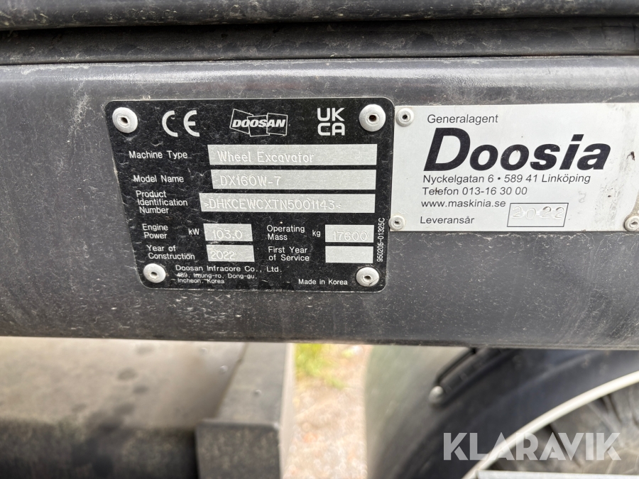 Grävmaskin Doosan DX160W-7