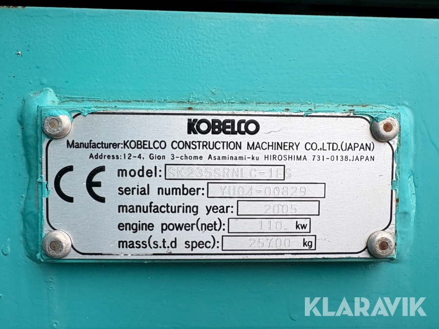 Bandgrävmaskin Kobelco 235SRNLC med skopor och tiltrotator