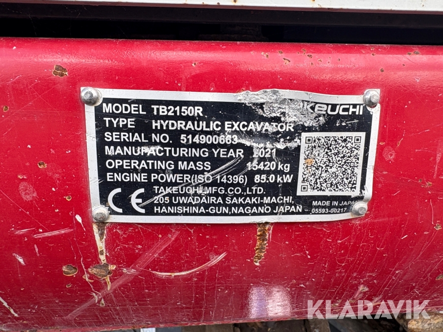 Grävmaskin Takeuchi TB2150R