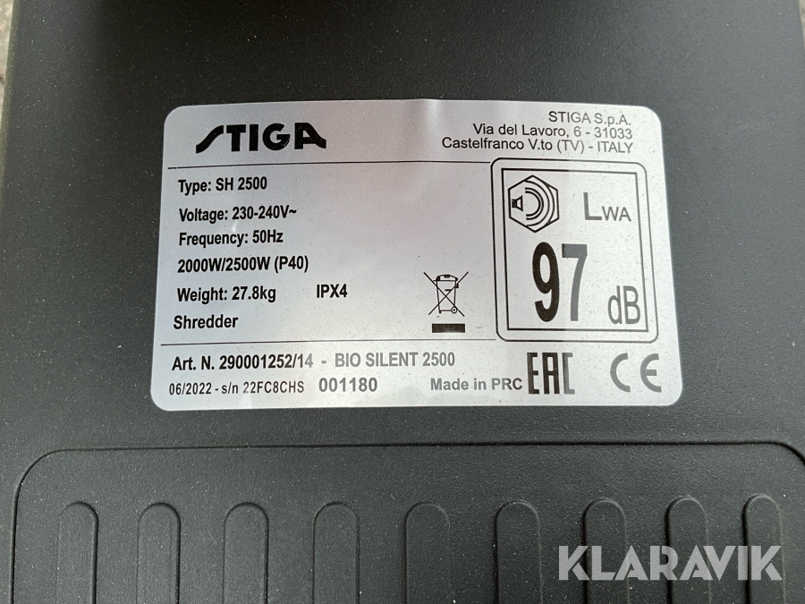 Eldriven kompostkvarn Stiga Bio Silent 2500