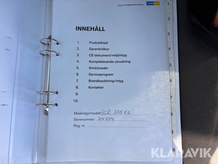 • Serie/chassinummer framgår