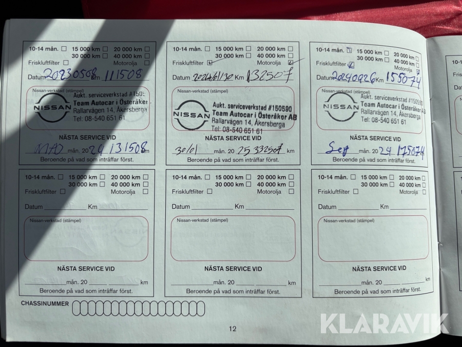 Service har genomförts de senaste 12 månaderna på verkstad
