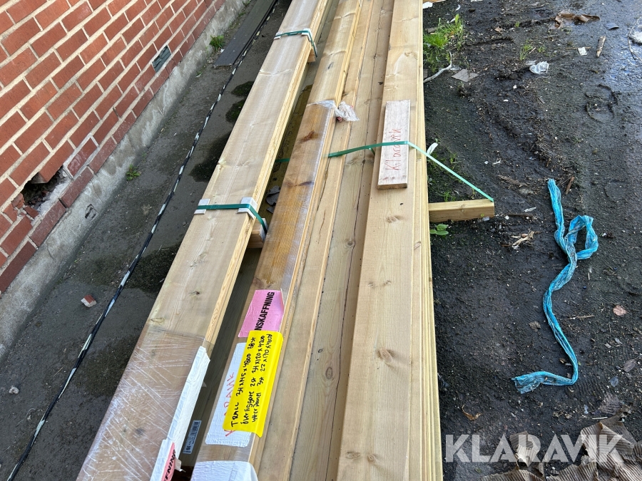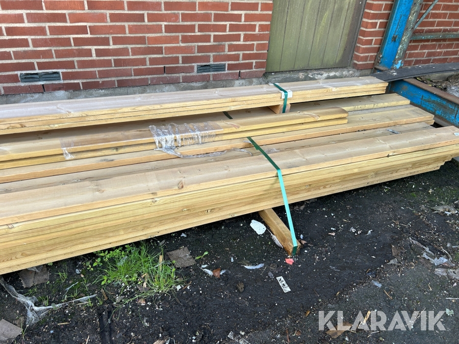 Parti med diverse impregnerat virke