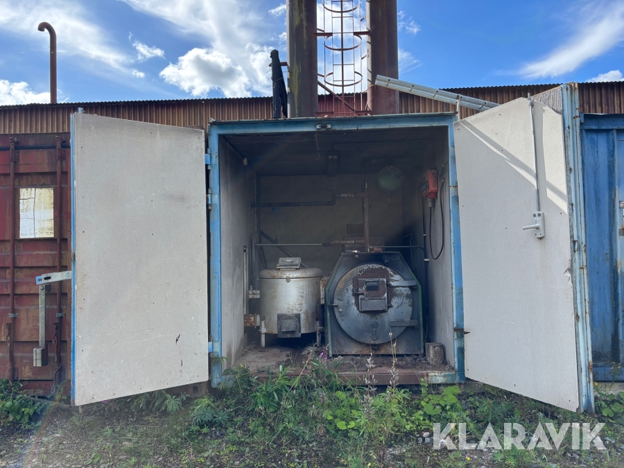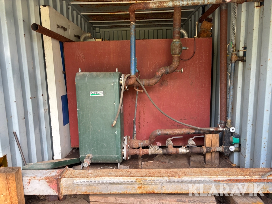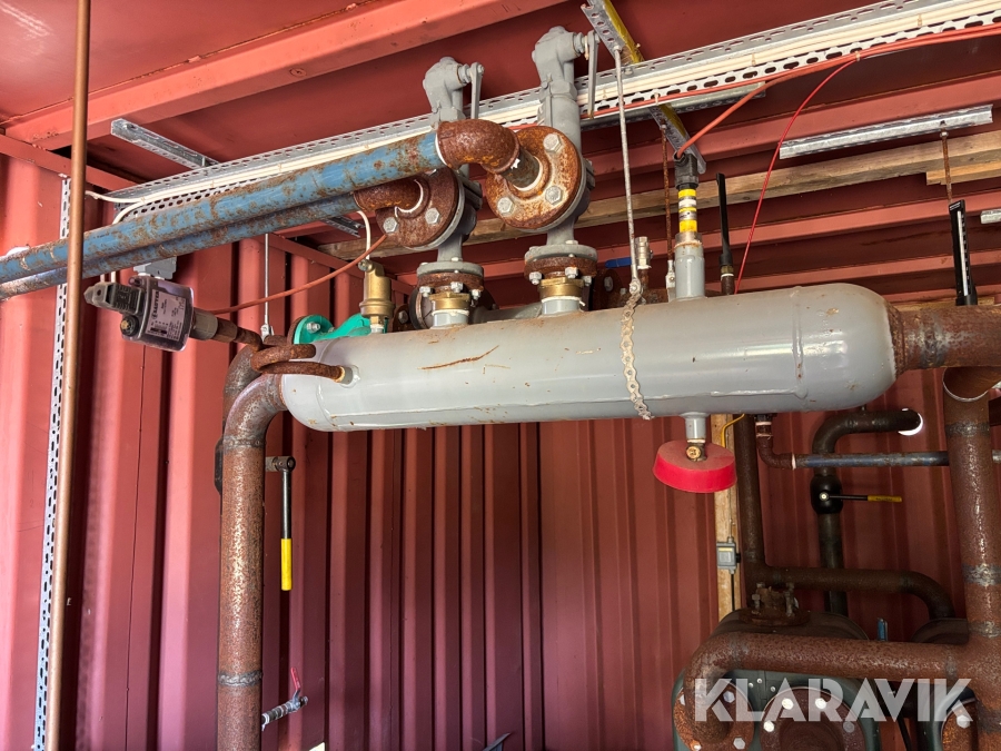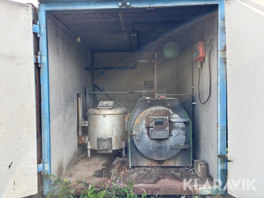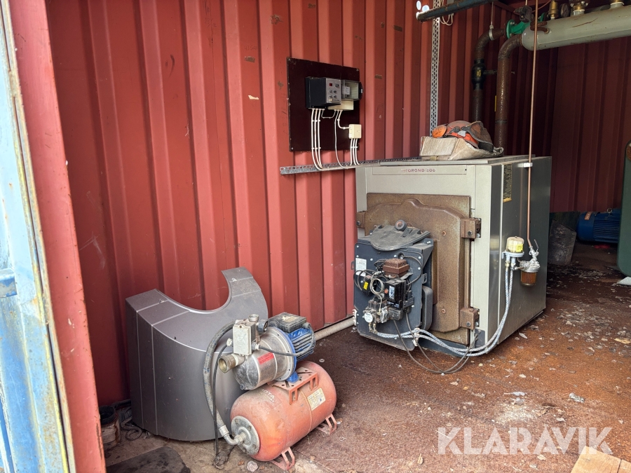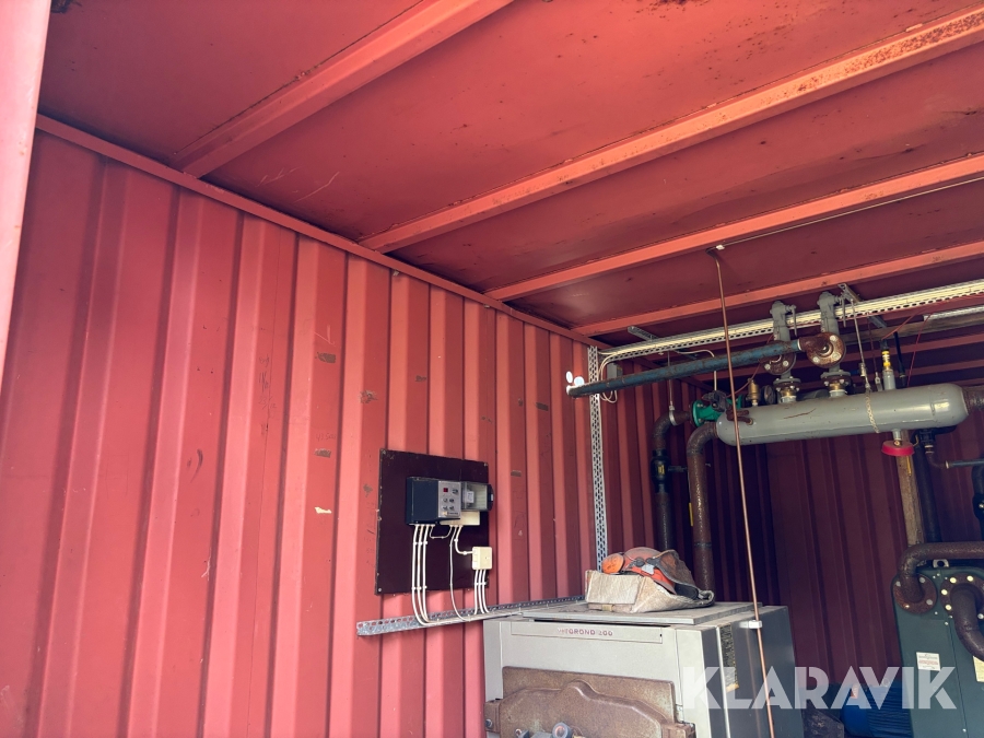 Panncentral med oljebrännare och vedpanna I containersystem
