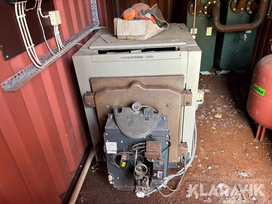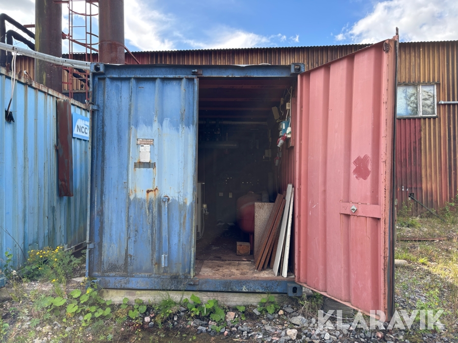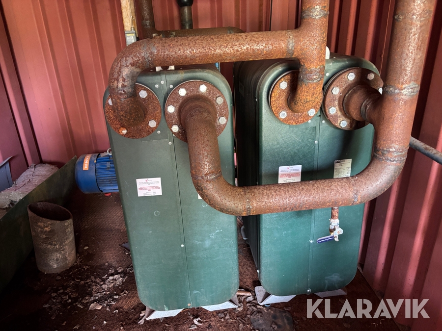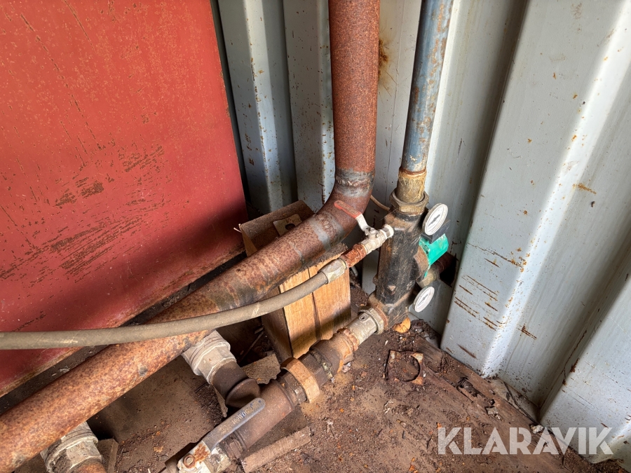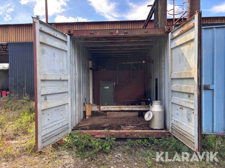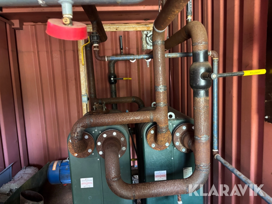 Panncentral med oljebrännare och vedpanna I containersystem