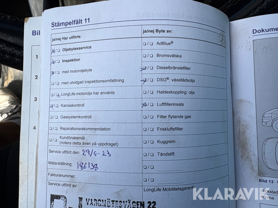 • Serie/chassinummer framgår