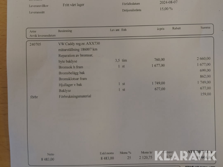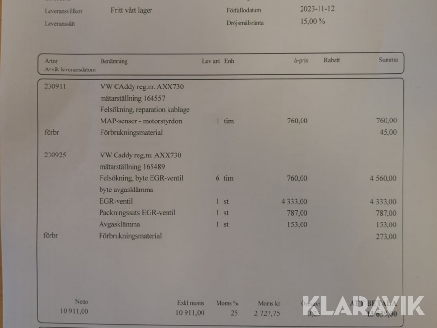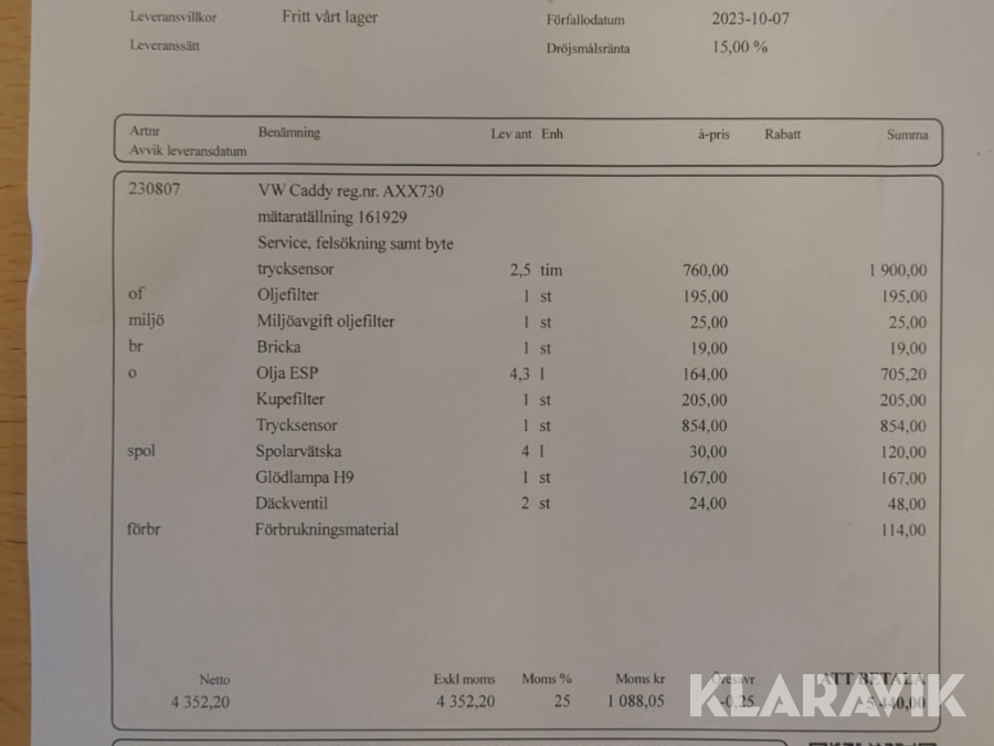 Du som köpare är skyldig att kontrollera objektet vid hämtning. Skiljer sig något avsevärt jämfört med informationen på klaravik.se? Kontakta då Klaravik innan du tar objektet från platsen. Läs fullständiga köpvillkor.
